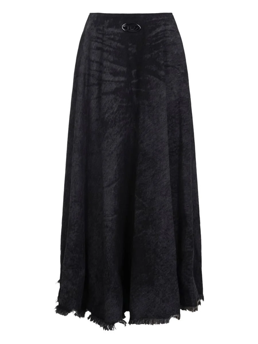 Black A-line flared skirt by Diesel with logo SizeAndFit: Gender: Women Material: .80% COTTON 20% HEMP Color: Black Made in: Imported Product ID: A21505 007DB 02 *Import tax/duty will be calculated at checkout (If applicable)