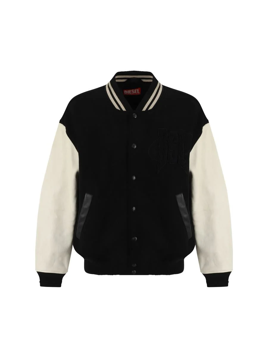 L-NYMAN WOOL JACKET FROM DIESEL, RIBBED COLLAR, SNAP BUTTON FRONT CLOSURE, RIBBED CUFFS, RIBBED HEM, TWO SIDE WELT POCKETS, CONTRAST SLEEVES, ICONIC MONOGRAM ON FRONT AND BACK, REGULAR FIT. RTW IT Gender: Men Material: WOOL | NYLON Color: MULTICOLOUR Made in: Imported Product ID: A144140LHAL_9XX *Import tax/duty will be calculated at checkout (If applicable)