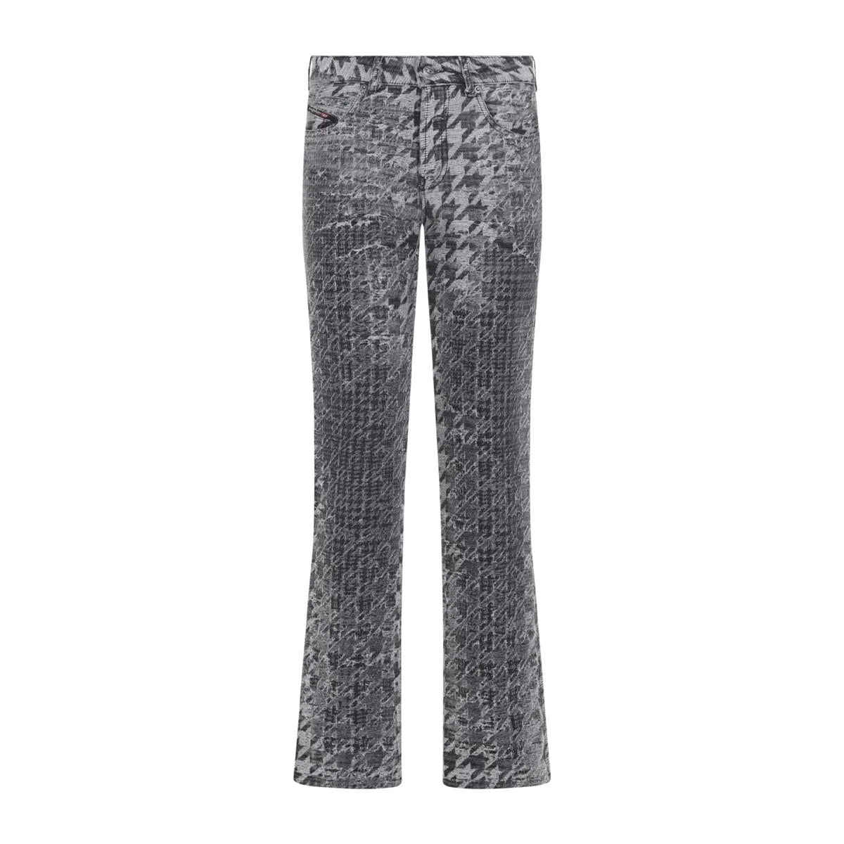 Diesel Grey Cotton 1992 D-Jiann Jeans. Pure grey cotton jeans, front concealing zipped fastening, front buttoned fastening, belt loops, side patch logo, five pocket design, flared leg, straight hem. Herringbone white and grey design. Gender: Women Material: 100%COTTON Color: GREY Made in: Imported Product ID: A21376.0CEBN_02 *Import tax/duty will be calculated at checkout (If applicable)