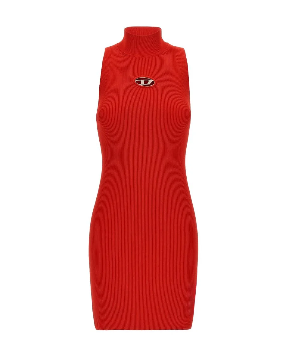 'M-onervax' ribbed knit dress with high neck, front metal logo, sleeveless Gender: WOMEN Material: 83% VISCOSE, 17% POLYESTER Color: RED Made in: IMPORTED Product ID: A123960DLAX42A *Import tax/duty will be calculated at checkout (If applicable)