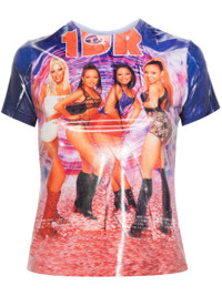 multicolour stretch-design high-shine detailing all-over photograph print crew neck short sleeves straight hem pull-on style This piece fits true to size. We recommend you get your regular size Model is 1,75m / 5ft 8in wearing size S Gender: Women Material: POLYESTER 84% ELASTANE 16% Color: MULTICOLOUR Made in: BG Product ID: A135790JNAK41SA *Import tax/duty will be calculated at checkout (If applicable)