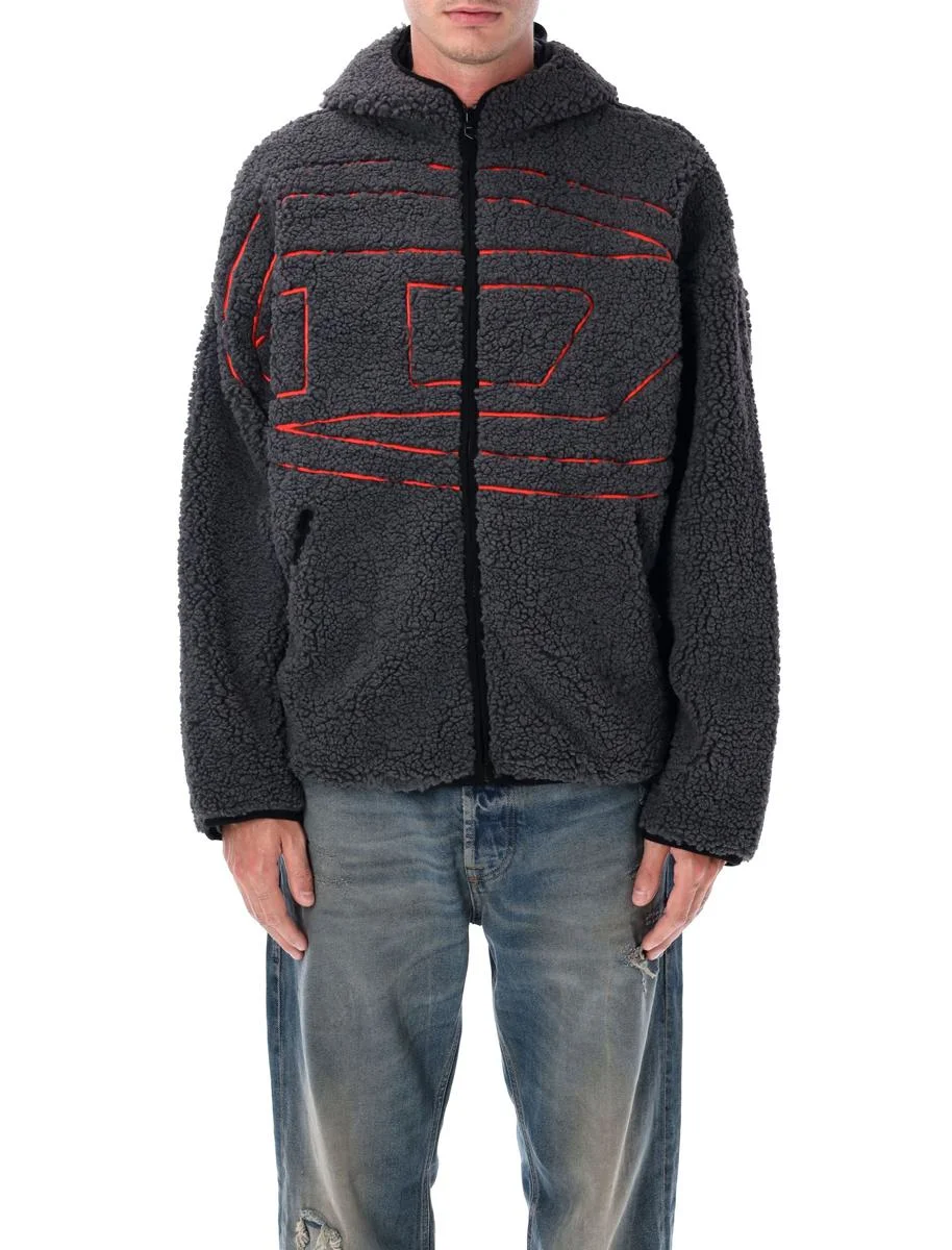 Combining cozy texture with streetwise detailing, the Diesel S-Zat hoodie is crafted from ultra-soft teddy fleece with a jersey lining. It features a front zip closure with branded puller, an oversized fit, and rope-embroidered Oval D logo at the chest. Lycra-bound edges add a technical finish to this bold, tactile piece. 100% polyester teddy fleece Loose fit with jersey lining Zip closure with branded puller Hooded design Oval D rope embroidery at front Lycra tape trim at cuffs, hem, and openings Andrea is 1,90 m and wears size L Gender: Men Material: 100% POLYESTER Color: Grey Made in: Imported Product ID: 25AA189470KIBT#9AW *Import tax/duty will be calculated at checkout (If applicable)