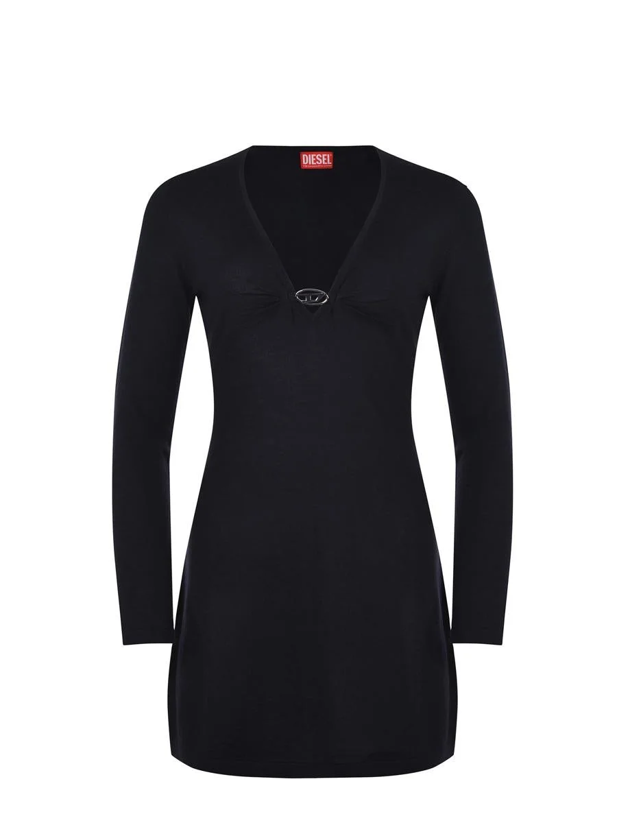 Diesel suit made of dark blue wool. V-neck. Long sleeves. Cut-out "D" logo detail on the chest in embossed silver metal with draped effect on the sides. Gender: Women Material: 100% WOOL Color: BLUE Made in: IMPORTED Product ID: A174540JQAB81E *Import tax/duty will be calculated at checkout (If applicable)