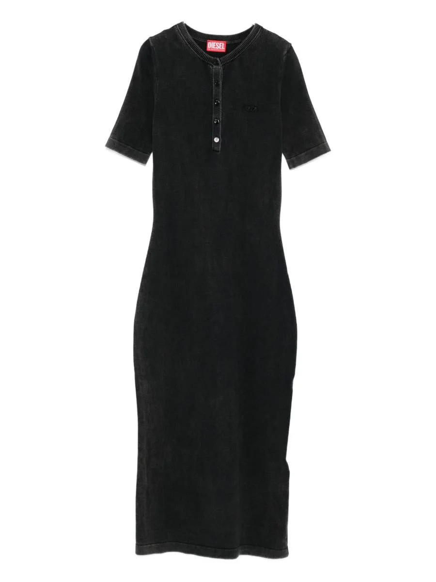 Diesel Black cotton dress with short sleeves, button closure, and round neckline Gender: Women Material: 100%COTTON Color: Black Made in: Italy Product ID: A218620QKBT900 *Import tax/duty will be calculated at checkout (If applicable)