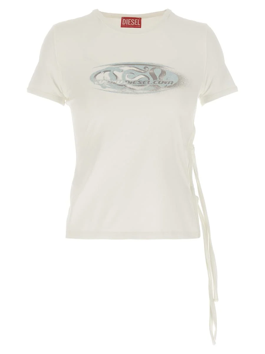 'T-Laya' stretch cotton jersey T-shirt with flocked texture print on the front, crew neck, short sleeves, tone-on-tone logo embroidery at the back, lace-up split on the left side Gender: Women Material: 95% COTTON, 5% ELASTANE Color: WHITE Made in: Bulgaria Product ID: A193680HQAH100 *Import tax/duty will be calculated at checkout (If applicable)