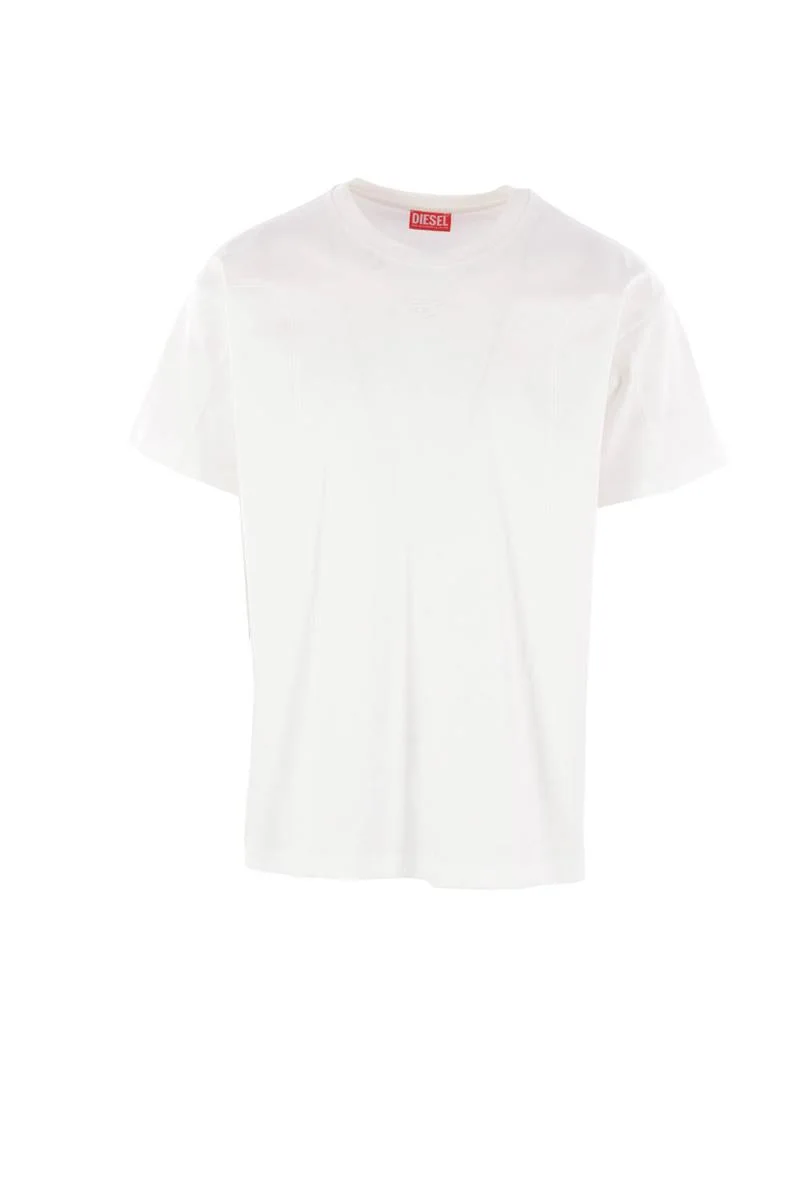 Diesel t-shirt crafted from white cotton jersey with tone-on-tone embroidered Oval D logo on the chest. Featuring a crew neckline, short sleeves, shaped inserts, and a straight hem. Gender: Men Material: 100%COTTONTTON+ RIB 94%COTTONTTON 6%ELASTANE Color: WHITE Made in: Imported Product ID: A195240AIJU141 *Import tax/duty will be calculated at checkout (If applicable)