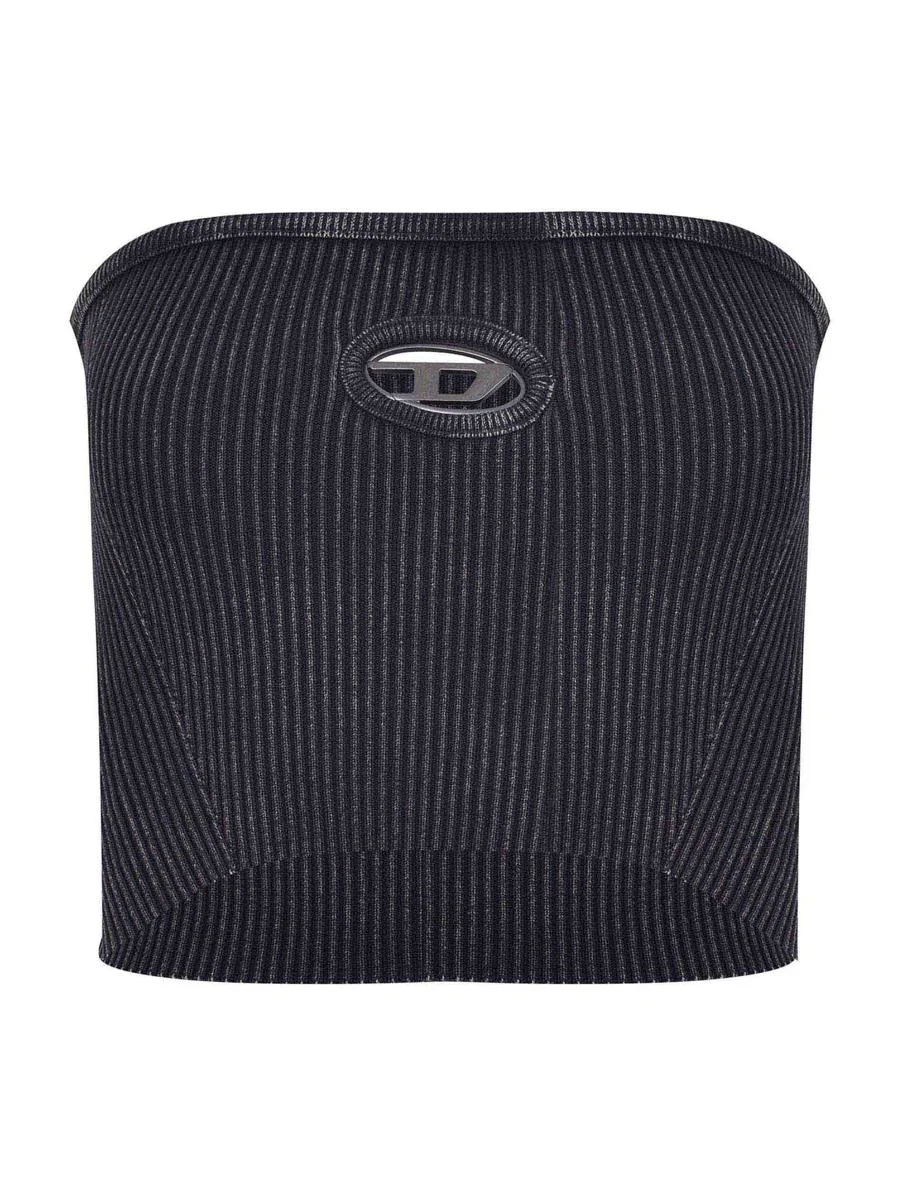 Top Diesel made from a black cotton blend. Faded effect. Ribbed stretch fabric. Strapless. Cut-out logo on the front in silver-colored metal. Gender: Women Material: COTTON Color: Black Made in: Italy Product ID: A148130AKBQ-900 *Import tax/duty will be calculated at checkout (If applicable)
