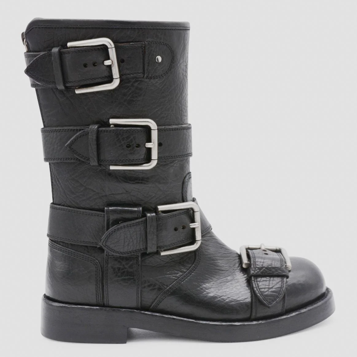 Balck leather boots from Dolce & Gabbana featuring round toe, back zip fastening, all-over buckles, silver tone hardware and low heel. Size Type: Shoes Woman IT Gender: Women Material: 100%HORSE Color: Black Made in: Italy Product ID: CT1106AW35280999 *Import tax/duty will be calculated at checkout (If applicable)