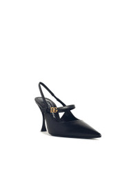 Sculptural heel, adjustable strap, elastic back lace\nHeel height 9 cm Gender: Women Material: 100% CALFSKIN LEATHER Color: Black Made in: Italy Product ID: CG0974 A573880999 *Import tax/duty will be calculated at checkout (If applicable)