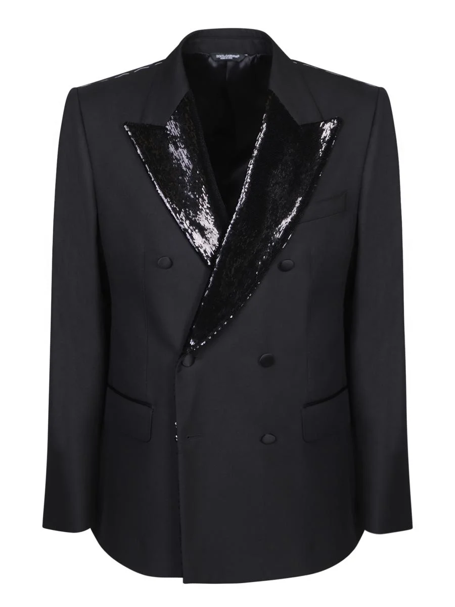 Double-breasted jacket by Dolce&Gabbana Peak lapels. Front button fastening. Gender: Men Material: 100% SILK 80% POLYESTER 18% VISCOSE 2% SILK Color: Black Made in: Imported Product ID: G2QU4T FURLT N0000 *Import tax/duty will be calculated at checkout (If applicable)