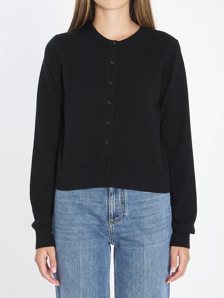 Black cashmere cardigan. Features ribbed crew neck, long sleeves, front button closure, ribbed finish, and D&G embroidery at the hem. Cropped style. Slim fit. The model is 178 cm tall and wears size 42 IT. Size nationality: IT Gender: Women Material: 100% CASHMERE; EMBR: 90% VISCOSE, 10% POLYESTER Color: Black Made in: Italy Product ID: 36437212 FXVA3Z JDVC2 N0000 *Import tax/duty will be calculated at checkout (If applicable)