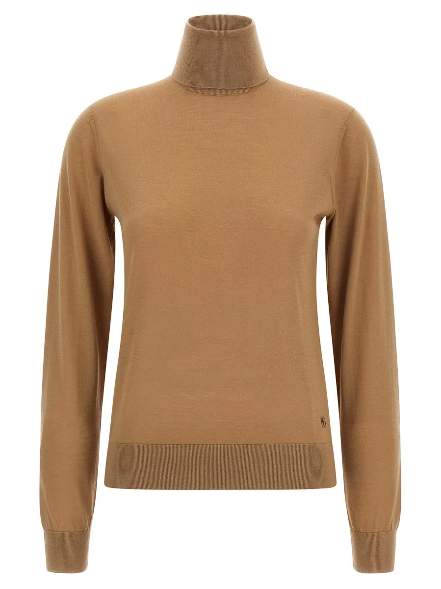 Cashmere turtleneck sweater, tone-on-tone logo embroidery on the front, turned-up high neck, long cuffed sleeves Gender: Women Material: 100% CASHMERE Color: Beige Made in: Italy Product ID: FXW42ZJBW0PM0444 *Import tax/duty will be calculated at checkout (If applicable)
