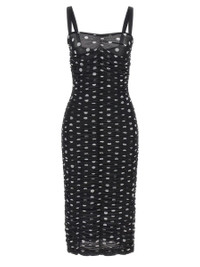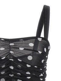This midi sheath dress features a draped design in polka dot tulle. It has a square neckline and is sleeveless with adjustable elastic straps. The interior is lined with ultra-matte organza, and it includes a back closure with a zip and hook. Crafted in Italy, it is made from 100% polyester. Gender: WOMEN Material: 100% POLYESTER Color: Black Made in: IT Product ID: F6JHXTFSRP7HNZRW *Import tax/duty will be calculated at checkout (If applicable)