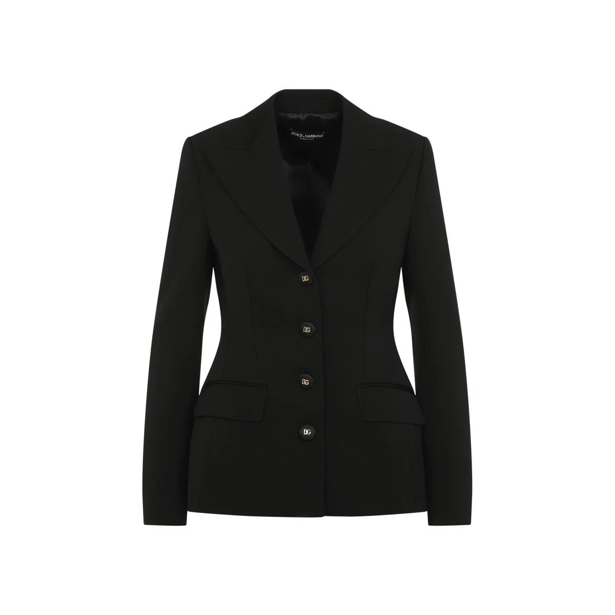 Dolce & Gabbana Black Virgin Wool Jacket. Black virgin wool, single-breasted, peak lapels, branded button fastening, reinforced shoulders, two front flap pockets, log sleeves, buttoned cuffs, hourglass-shaped, lined. Gender: Women Material: 100%VIRGIN WOOL Color: Black Made in: IT Product ID: F27DCT.FUBGE_0000 *Import tax/duty will be calculated at checkout (If applicable)