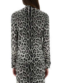 Dolce & Gabbana Leopard Print Bow Charmeuse Shirt