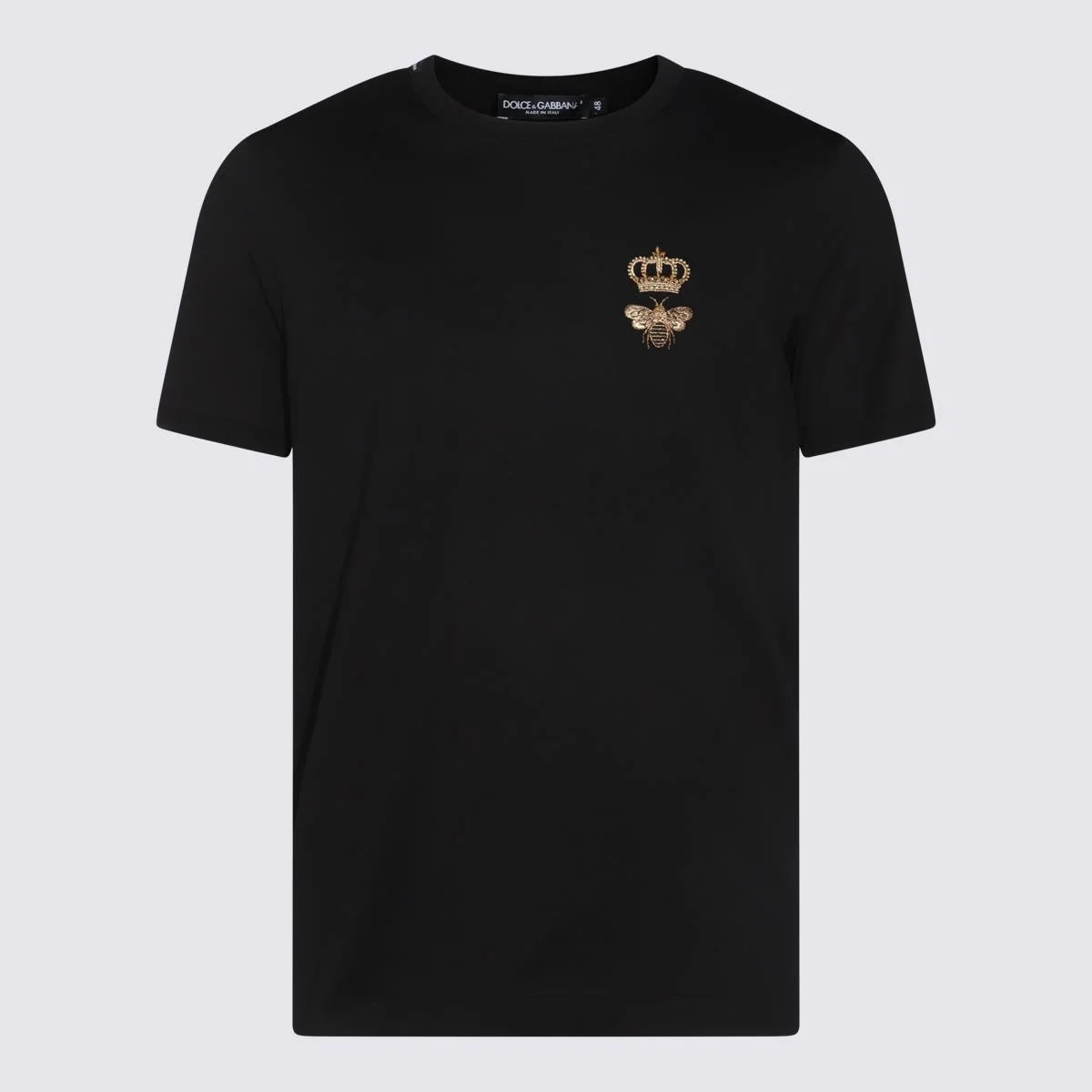 motif-detail T-shirt from DOLCE & GABBANA featuring black, gold-tone, cotton, embroidered motif, crew neck and short sleeves. This piece fits true to size. We recommend you get your regular size Model is 1,84m / 6ft 1in wearing size 48 (IT) Gender: Men Material: COTTON 100%, POLYESTER 35%, POLYAMIDE 25%, VISCOSE 20%, METALLIZED POLYESTER 20% Color: BLACK Made in: IT Product ID: G8PV1ZG7WUQN0000 *Import tax/duty will be calculated at checkout (If applicable)
