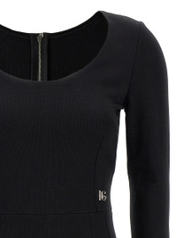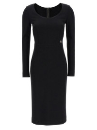 Stretch viscose midi dress with wide round neckline and metal logo detail. Gender: WOMEN Material: 73% VISCOSE 23% POLYAMIDE 4% ELASTANE Color: BLACK Product ID: F6ARMTFUGPNN0000 Made in: Imported *Import tax/duty will be calculated at checkout (If applicable)