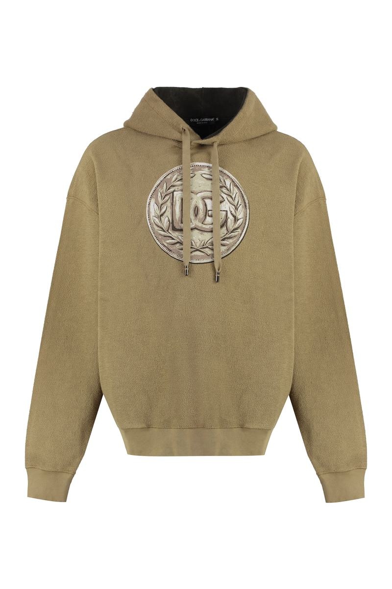 Logo print hoodie Monete DG rubber effect print Visible stitches Ribbed cuffs and lower edge 100% Cotton Gender: Men Material: COTTON Color: SAND Made in: IT Product ID: G9AKATG7JO7_M0464 *Import tax/duty will be calculated at checkout (If applicable)