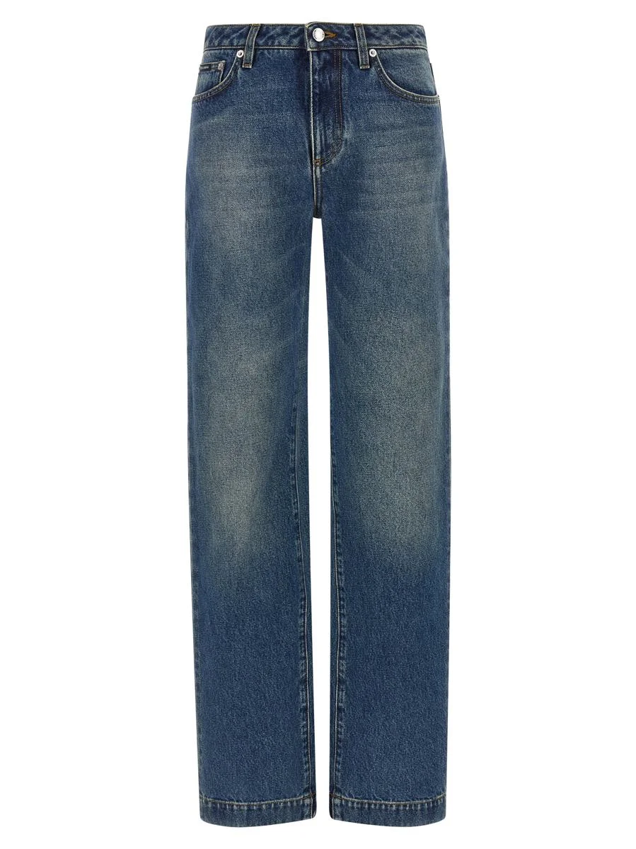 Washed cotton denim jeans, contrast stitching, low crotch, wide and straight leg, front zip and button closure, five pockets, leather and metal tag with the engraved back Gender: Women Material: 100% COTTON Color: BLUE Made in: Italy Product ID: FTDDFDG8NV3S9001 *Import tax/duty will be calculated at checkout (If applicable)
