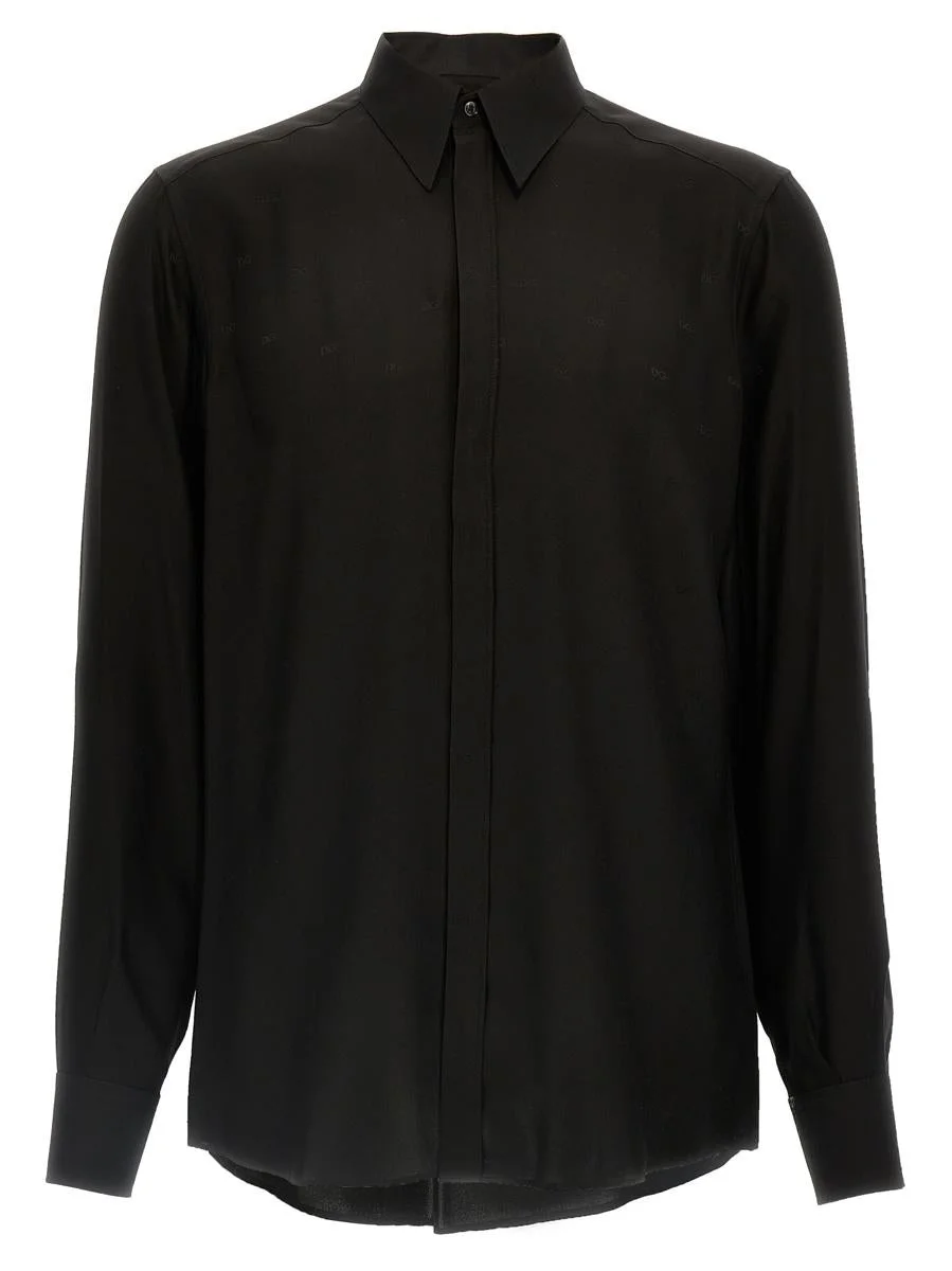 'Martini' crepe de chine silk shirt, all-over tone-on-tone logo jacquard, button closure, long cuffed sleeves Gender: Men Material: 100% SILK Color: Black Made in: IT Product ID: G5JL8TFJ1FKN0000 *Import tax/duty will be calculated at checkout (If applicable)
