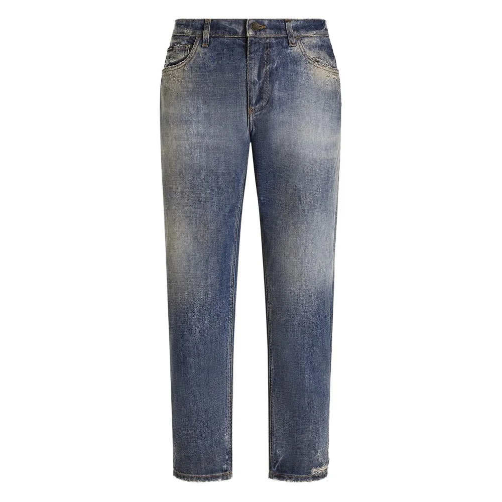 Blue faded effect distressed detailing logo plaque five-pocket styling button fly Gender: Men Material: COTTON: 100.0% Color: BLUE Made in: Italy Product ID: GYJDAD G8NX2 S9001 *Import tax/duty will be calculated at checkout (If applicable)