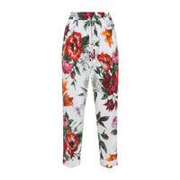 Dolce & Gabbana White Cotton Pants. Pure cotton pants, elasticated waist, front drawstring details, side pockets, rolled-up hem. White background with multicolor anemone and lily design. Gender: Women Material: 100%COTTON Color: MULTICOLOUR Made in: Italy Product ID: FTDC3T.HS5TQ_5 *Import tax/duty will be calculated at checkout (If applicable)