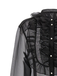 Silk organza shirt with plastron and ruffles, button closure, long sleeves Gender: Women Material: 100% SILK Color: BLACK Made in: Imported Product ID: F5S10TFU1BUN0000 *Import tax/duty will be calculated at checkout (If applicable)