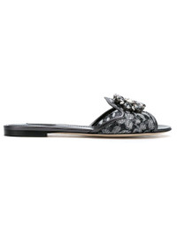 Dark silver Bianca crystal-embellished lace sandals from Dolce & Gabbana featuring a floral lace pattern, crystal embellishments, an open toe, a branded insole and a slip-on style. Gender: Women Material: SYNTHETIC->POLYESTER100.0 % FURS & SKINS->LEATHER100 % FURS & SKINS->LEATHER100 % Color: SILVER Made in: IT Product ID: CQ0023AE63787505 *Import tax/duty will be calculated at checkout (If applicable)