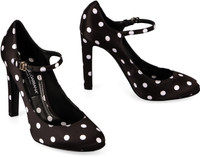 Satin mary jane pumps Polka-dot motif Round toeline 100% Polyester, 40% Goatskin, 60% Polyester Gender: Women Material: POLYESTER Color: Black Made in: IT Product ID: CD1869AV885_HN10W *Import tax/duty will be calculated at checkout (If applicable)