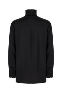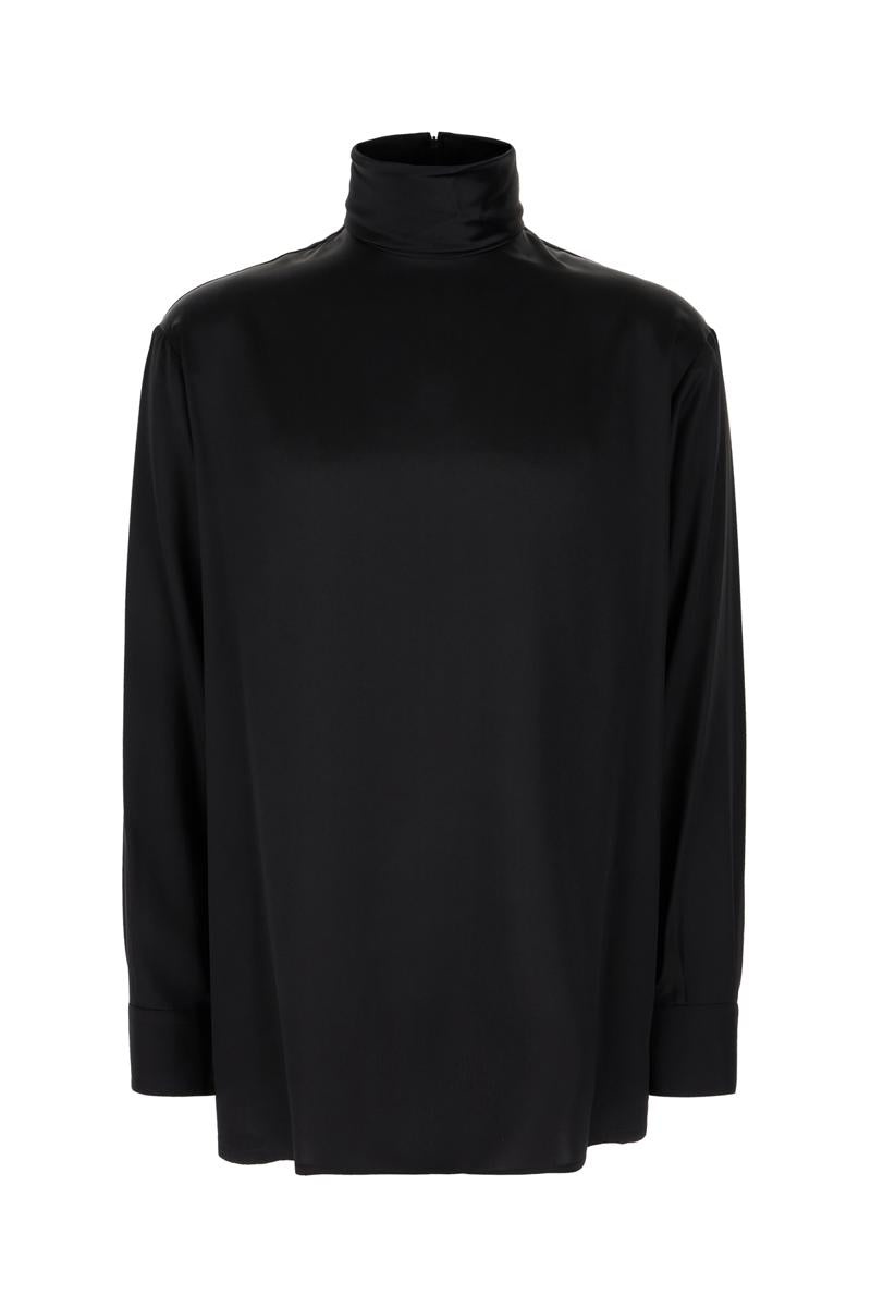 Loose silk turtleneck with shirt cuffs