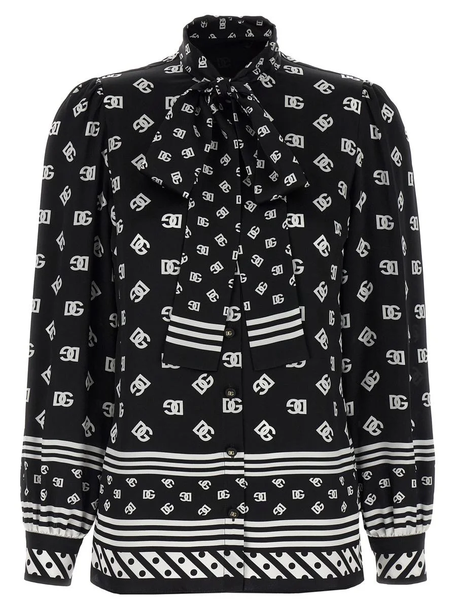 Silk twill shirt with all-over DG logo print, lavalliere collar, front button closure, long cuffed sleeves Gender: Women Material: 100% SILK Color: Multicolor Made in: IT Product ID: F5T41THI1X1HN4ZW *Import tax/duty will be calculated at checkout (If applicable)