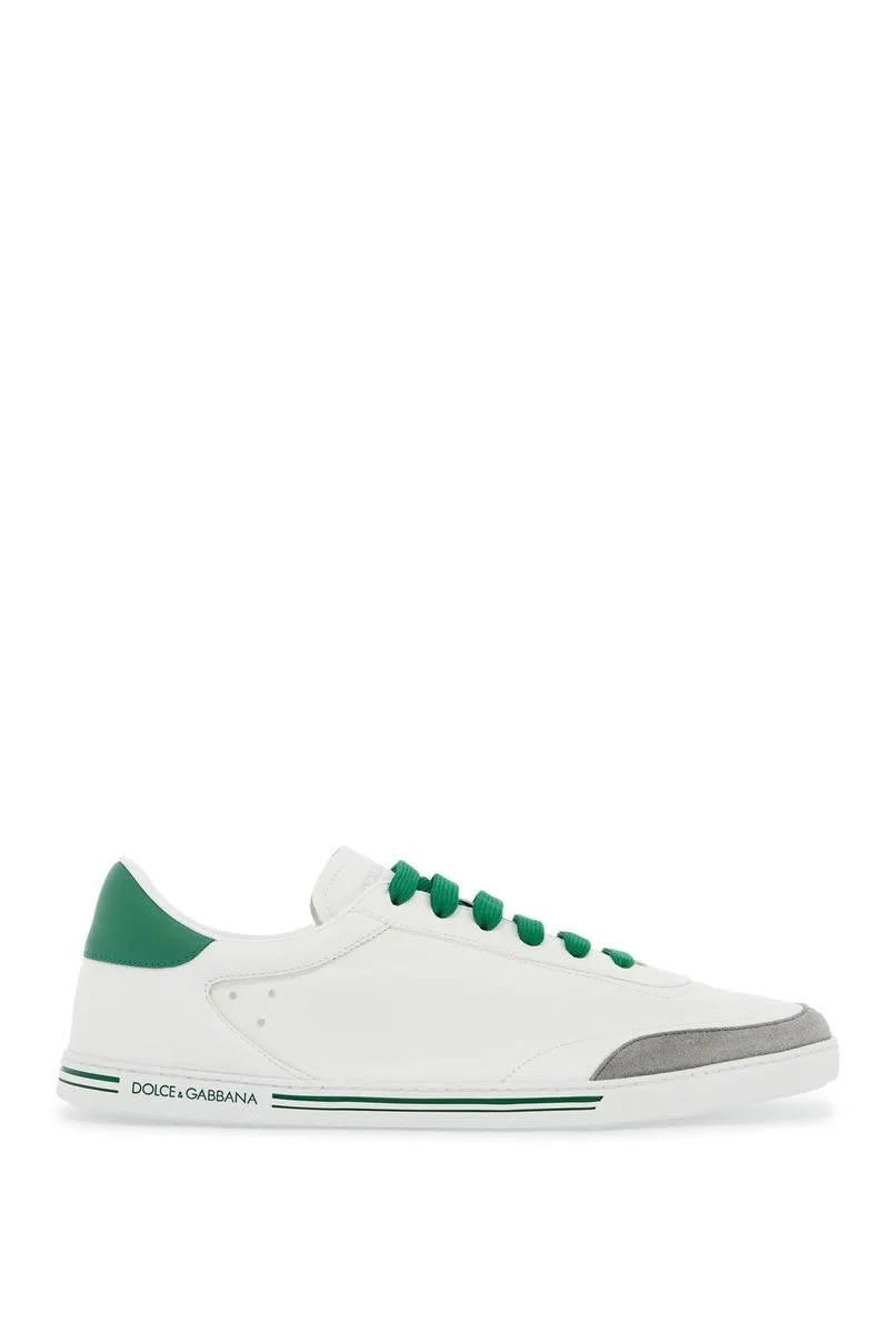 Dolce & Gabbana's low-top sneakers crafted in white smooth leather with grey suede insert. Featuring lace-up closure, a round-toe silhouette, lettering logo embossed on tongue, green leather heel tab, leather lining and rubber sole. The sneakers come with an additional set of shoelaces. Gender: MEN Material: 100%CALF Color: WHITE Made in: IT Product ID: CS2255AV11180995 *Import tax/duty will be calculated at checkout (If applicable)