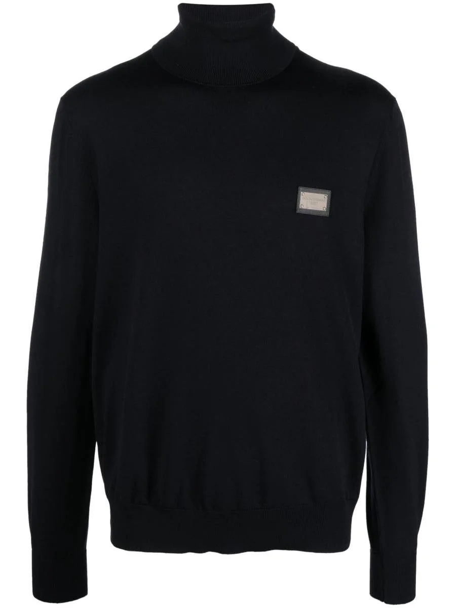 Wool turtle-neck sweater with branded tag