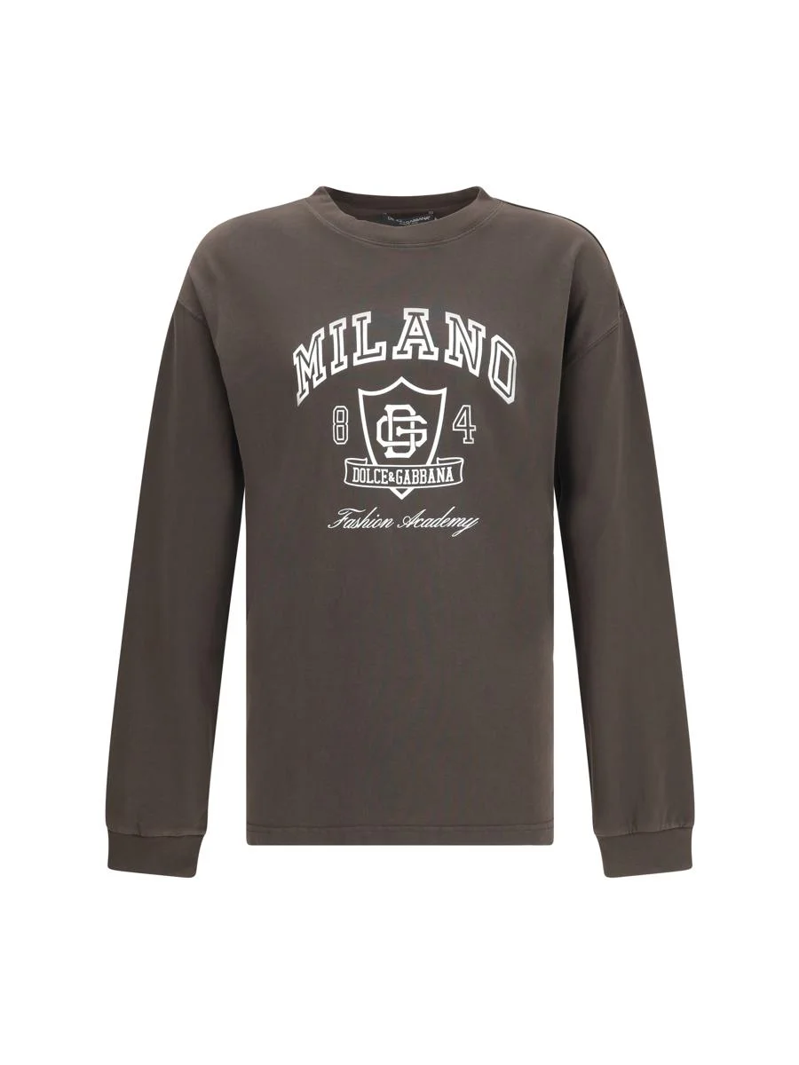 THE LONG-SLEEVED COTTON T-SHIRT FROM DOLCE & GABBANA EXPRESSES A DISTINCTIVE, URBAN AESTHETIC THANKS TO THE MILAN LOGO PRINT ON THE FRONT. THE RIBBED-FINISHED CREW NECK AND ESSENTIAL SILHOUETTE ENHANCE THE COMFORTABLE FIT, MAKING IT A VERSATILE GARMENT THAT COMBINES PRACTICALITY AND CONTEMPORARY STYLE. STANDARD Gender: Men Material: COTTON Color: BROWN Made in: Italy Product ID: G8SY0TG7PLR_M1348 *Import tax/duty will be calculated at checkout (If applicable)