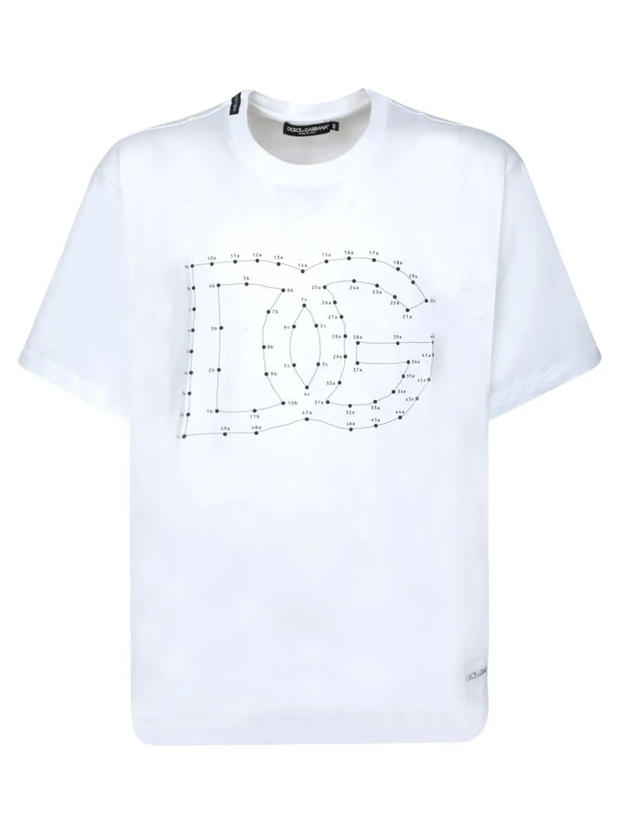 Short sleeves. Front graphic print. Crew neck. This chic white T-shirt from Dolce & Gabbana features a striking graphic design celebrating the iconic DG logo with a contemporary approach. Made from high-quality materials, it ensures comfort and durability. Gender: Men Material: 100% COTTON Color: WHITE Made in: Imported Product ID: G8PN9T G7O4N W0800 *Import tax/duty will be calculated at checkout (If applicable)