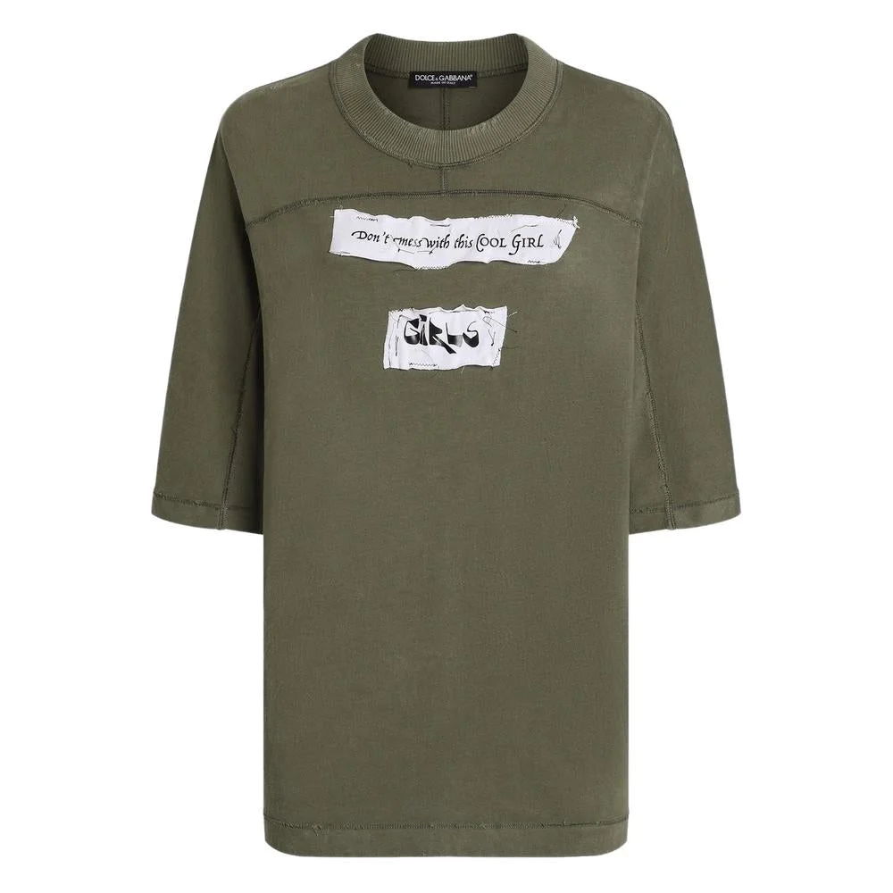 Green graphic print patch panelled design short sleeves round neck Gender: Women Material: COTTON: 100.0% Color: GREEN Made in: Italy Product ID: F8V80T GDDI2 V4026 *Import tax/duty will be calculated at checkout (If applicable)