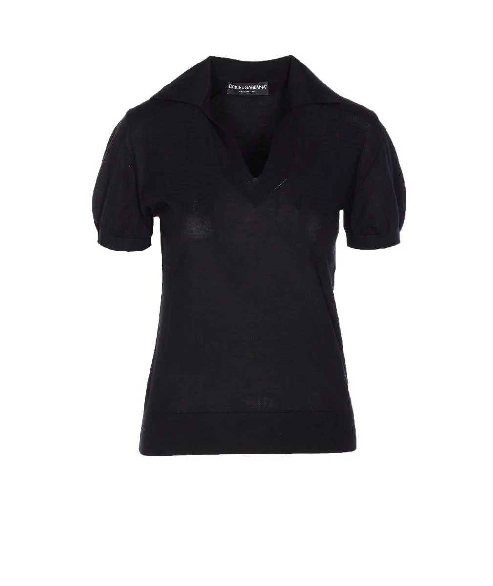 Dolce&AmpGabbana Black Polo, Regular Collar, Short Sleeves, Embroidered Logo At Bottom, EU SIZE (IT) Gender: Women Material: 100% CASHMERE, 100% VISCOSE Color: Black Made in: Italy Product ID: FXZ34ZJBW0PN0000 *Import tax/duty will be calculated at checkout (If applicable)