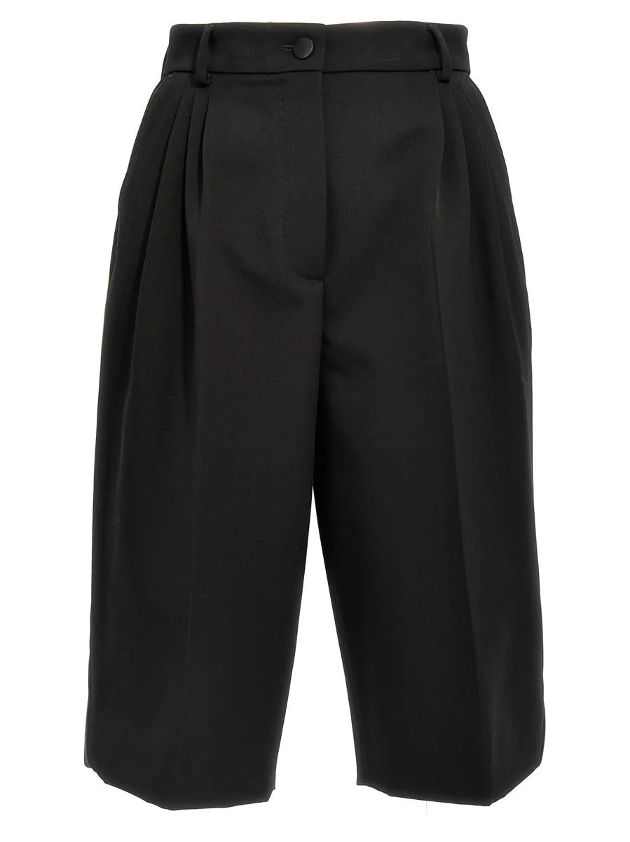 Tuxedo bermuda shorts in wool gabardine, high waist model with front pleats, zip and button closure, pockets Gender: Women Material: 89% VIRGIN WOOL 9% SILK 2% POLYESTER Color: Black Made in: IT Product ID: FTC77TFU21EN0000 *Import tax/duty will be calculated at checkout (If applicable)