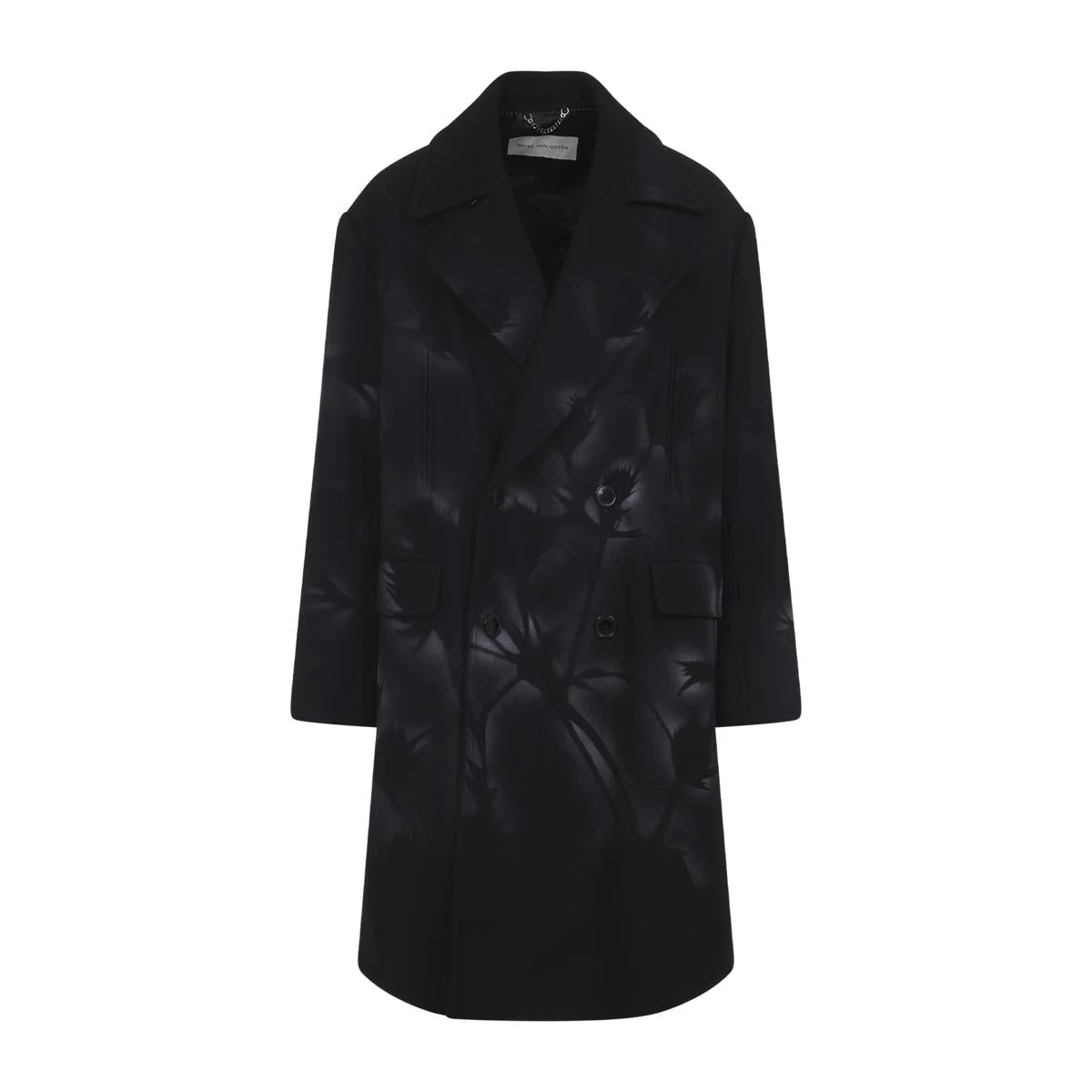 Dries Van Noten Black Wool Racos Coat. Crafted in wool and polyamide fabric. Notched collar, front buttoned fastening, double-breasted design, chest slit pocket, side flap pockets, long sleeves, buttoned cuffs, midi-length, straight hem, white shades of flower design. Gender: Men Material: 70%WOOL 30%POLYAMIDE Color: Black Made in: Poland Product ID: 2520202622216_900 *Import tax/duty will be calculated at checkout (If applicable)