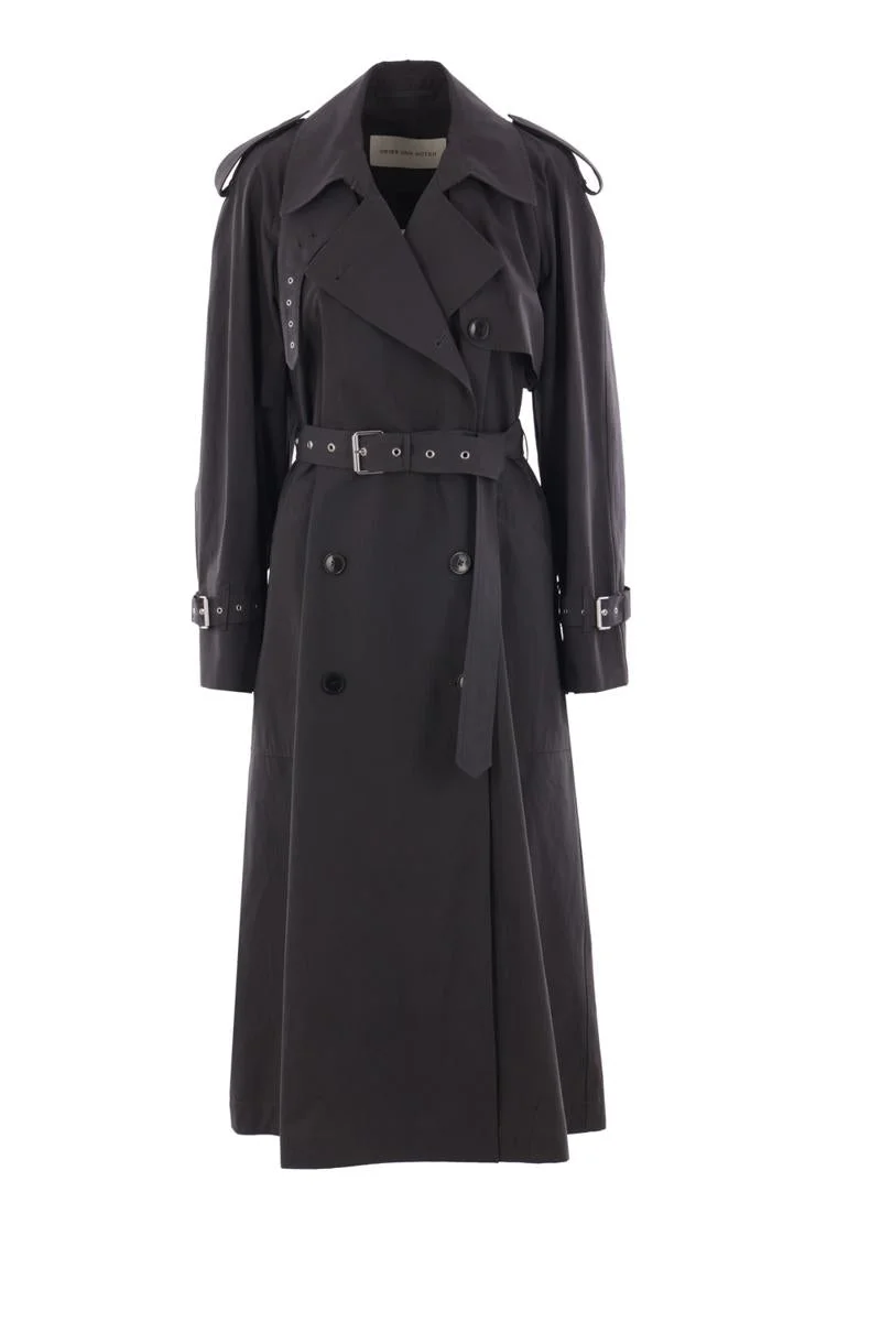 Dries Van Noten double-breasted trench coat made of dark grey cotton. Featuring wide lapels, a front button closure, shoulder and cuff epaulettes, welt pockets, long sleeves, a matching belt, a storm flap, a central back vent, and an unlined interior. Gender: Women Material: 100%COTTON Color: GREY Made in: PL Product ID: 0102051449803 *Import tax/duty will be calculated at checkout (If applicable)