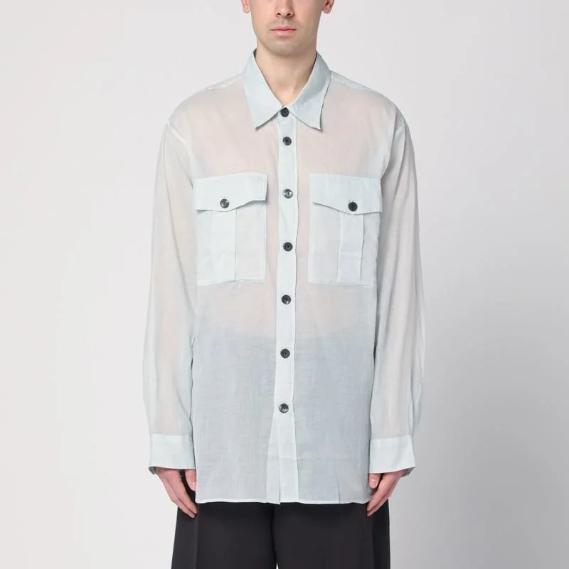 Dries Van Noten shirt in light ice blue cotton, featuring a classic collar, chest pockets with flap and buttons, long sleeves, and buttoned cuffs. Gender: Men Material: 100% Cotton Color: BLUE Made in: Imported Product ID: 207211160/Q_DRVNO-565 *Import tax/duty will be calculated at checkout (If applicable)
