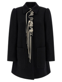 Rebela' wool blend coat with shirt collar, concealed front button closure with contrasting whiplash decorations, pockets, long sleeves with crinkled shoulders, lining Gender: Women Material: 70% WOOL, 30% POLYAMIDE Color: Black Made in: Imported Product ID: 2520102692216900 *Import tax/duty will be calculated at checkout (If applicable)
