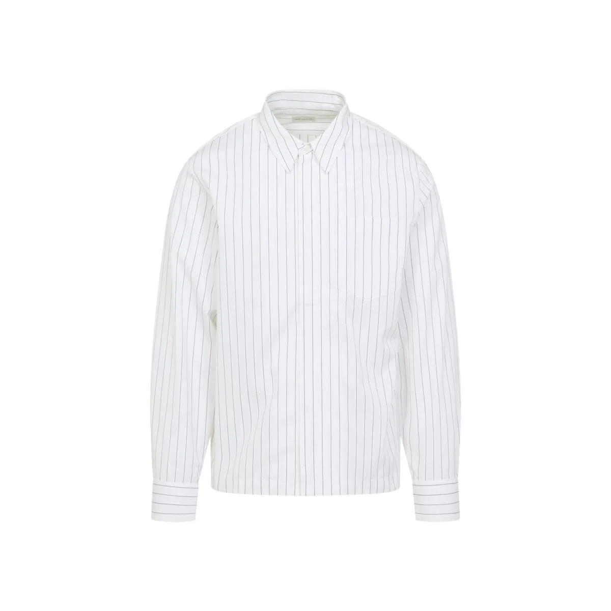 Dries Van Noten Corran Navy and Blue Cotton Shirt. Crafted from white and blue pinstriped cotton poplin, stiff kent collar, front concealed button fastening, long sleeves with buttoned cuffs, back yoke, straight hem, oversize fit. Gender: Men Material: 100%COTTON Color: BLUE Made in: Hungary Product ID: 2520207082021_509 *Import tax/duty will be calculated at checkout (If applicable)