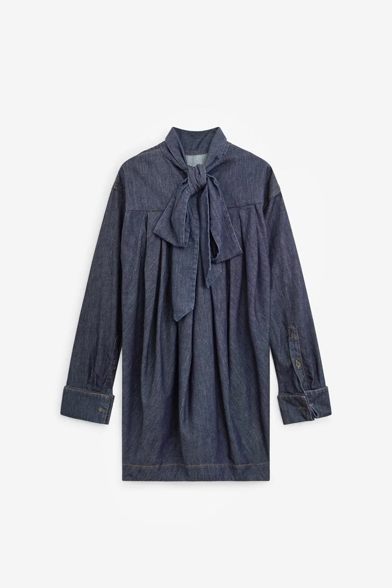 CHADDY DEN Shirt in blue cotton, long sleeves, straight hem, band collar with a pussy bow detail to the front Gender: Women Material: COTTON Color: BLUE Made in: Italy Product ID: 117440_10787-2382 *Import tax/duty will be calculated at checkout (If applicable)