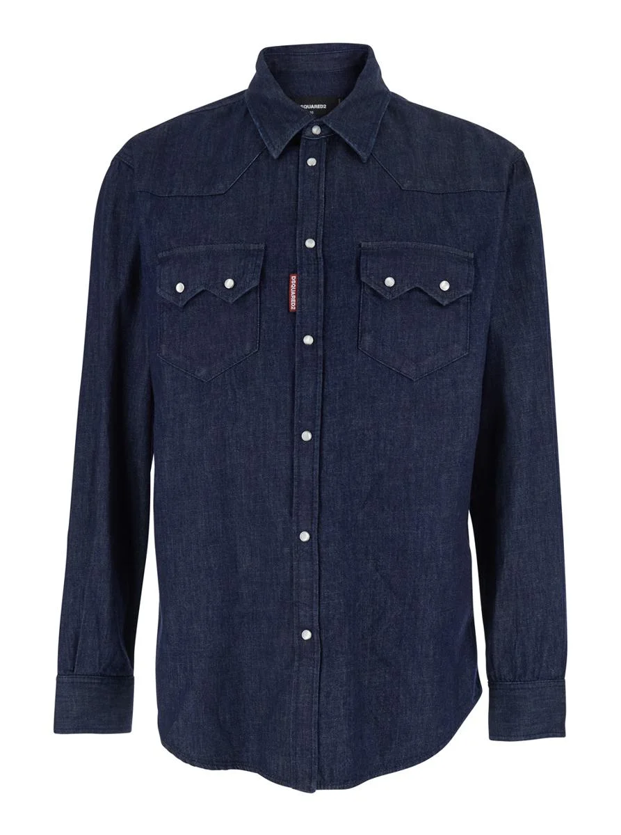 DSQUARED2 Blue Shirt With Classic Collar And Two Front Patch Pockets With Buttons In Denim Man