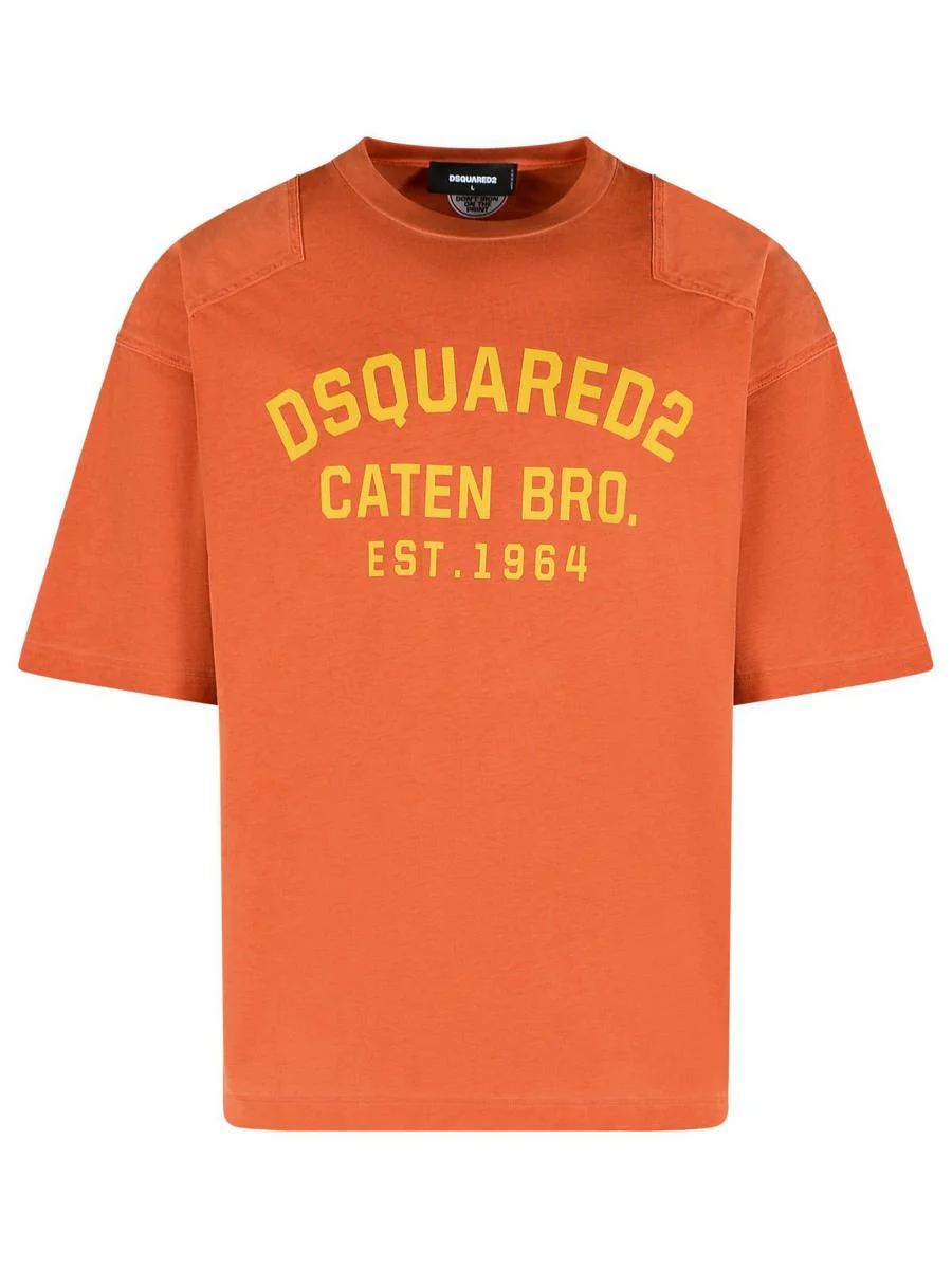 Ribbed crew neck, tone-on-tone patch on the shoulders, front 'Caten Bro' print Gender: Men Material: 100% COTTON Color: BROWN Made in: Italy Product ID: S71GD1572 D20035205 *Import tax/duty will be calculated at checkout (If applicable)
