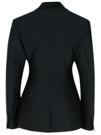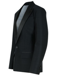 Made of virgin wool and silk, collar with peak lapels, single-breasted button closure, slit chest pocket, front flap pockets, button cuffs, back slit hem Gender: Women Material: 84% virgin wool, 16% silk Color: Black Made in: IT Product ID: S75BN0900 D35205900 *Import tax/duty will be calculated at checkout (If applicable)