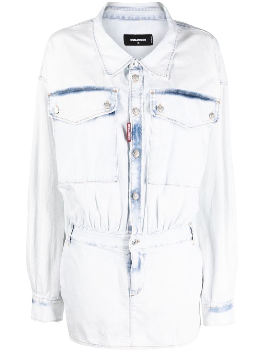 light wash denim minidress from DSQUARED2 featuring light blue, stretch-cotton, denim, light wash, two chest flap pockets, front button fastening, classic collar, long sleeves and thigh-length. This piece fits true to size. We recommend you get your regular size Model is 1,75m / 5ft 8in wearing size 40 (IT) Gender: Women Material: COTTON 98%, ELASTANE 2% Color: CLEAR BLUE Made in: IT Product ID: S75CV0635S30341470 *Import tax/duty will be calculated at checkout (If applicable)