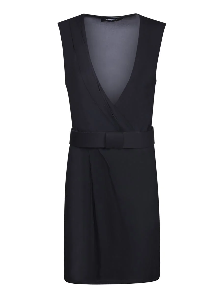 Sleeveless, wraparound cut, waist belt.. This black mini dress by DSQUARED2 is crafted from soft jersey. It features an elegant wraparound design highlighted by a waist belt that defines the silhouette Gender: Women Material: 95% VISCOSE 5% ELASTANE Color: Black Made in: Imported Product ID: S75CV0939 S23324 900 *Import tax/duty will be calculated at checkout (If applicable)
