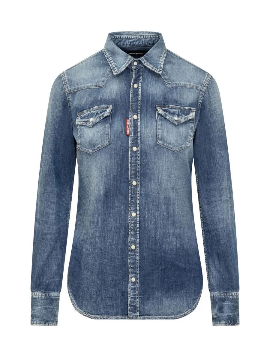 Dsquared2 washed-out effect denim shirt with snap buttons, flap pockets and iconic red logo. Gender: Women Material: 98% COTTON, 2% ELASTANE Color: BLUE Made in: Italy Product ID: S75DL0919S30341 470 *Import tax/duty will be calculated at checkout (If applicable)